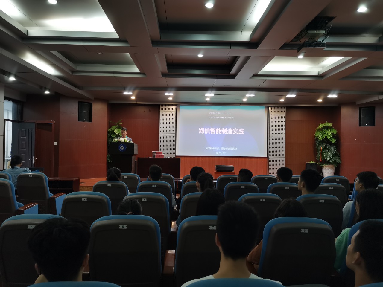 讲座围绕着“什么是智能制造”“海信智能制造实践”“智能制造未来展望”三个部分展开。在一个半小时的讲座中,丁觅坤深入浅出,系统地介绍了智能制造的背景、各国智能制造的规划愿景和智能制造的关键性技术等关于智能制造的基本情况。结合对海信视像科技的智能制造进程展示,丁觅坤细致讲解了我国智能制造的系统架构与海信视像科技关于智能制造的理解。讲座最后,丁觅坤对智能工厂、智控中心等未来智能制造方向做了展望。