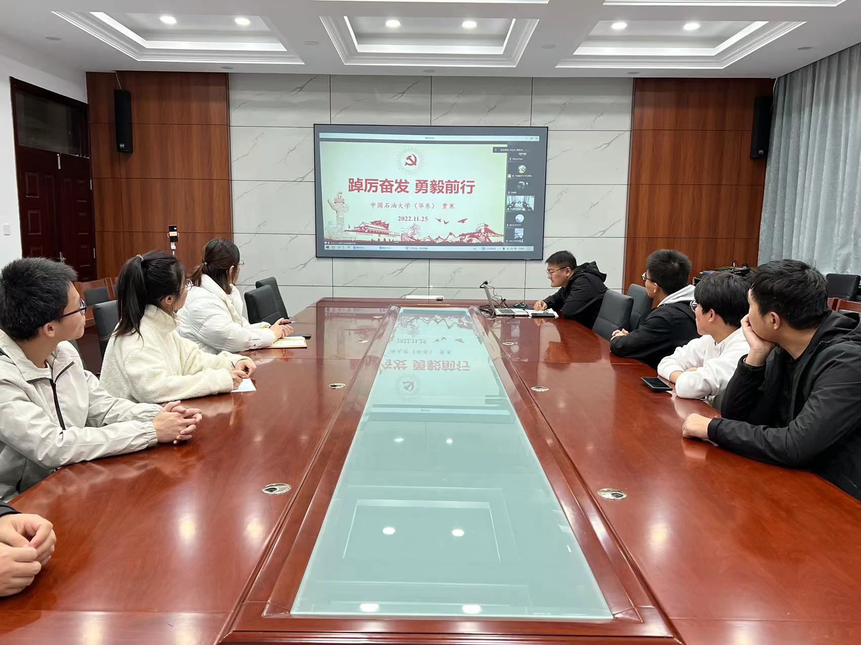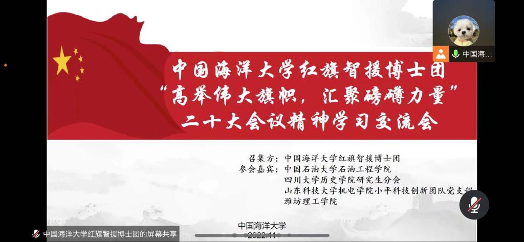 点击:为深入学习贯彻党的二十大精神,以实际行动传承红色思想、弘扬红色精神,同时加强高校之间的交流互动,持续建立亚洲色图 与其他高校之间的联系,11月25日,亚洲色图 小平科技创新团队党支部、能源20-2团支部部分代表与中国海洋大学、四川大学、中国石油大学和潍坊理工亚洲色图 相关老师、团队负责人共同开展“高举伟大旗帜,汇聚磅礴力量”党的二十大精神学习交流会活动,中国海洋大学红旗智援博士团党委书记刘笑笑、中国石油大学(华东)石油工程亚洲色图 教授贾寒、亚洲色图 团委书记樊玉华出席本次活动。