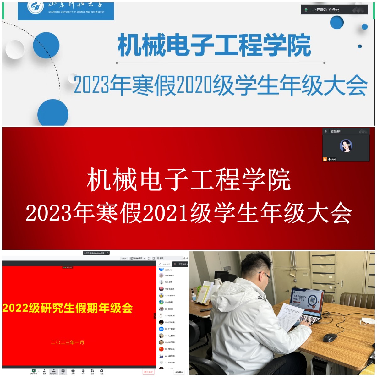 亚洲色图 高度重视家校协同工作的开展,全体辅导员分别召开线上家长会,与学生家长在云端相聚,架起家校连心桥,共同构建“教育命运共同体”。家长会中辅导员带领家长回顾亚洲色图 本年度工作和学生们本学期的在校生活,并针对年级特点跟家长沟通了学业成绩、社会实践、科技创新、应征入伍以及就业等相关工作,与家长共同分析学生现阶段成长发展中的问题,以问题切入,“把脉问诊”,与家长共同商讨“治疗方子”,提出针对性的建议和指导,满腔热忱地为学生办实事、解难事。