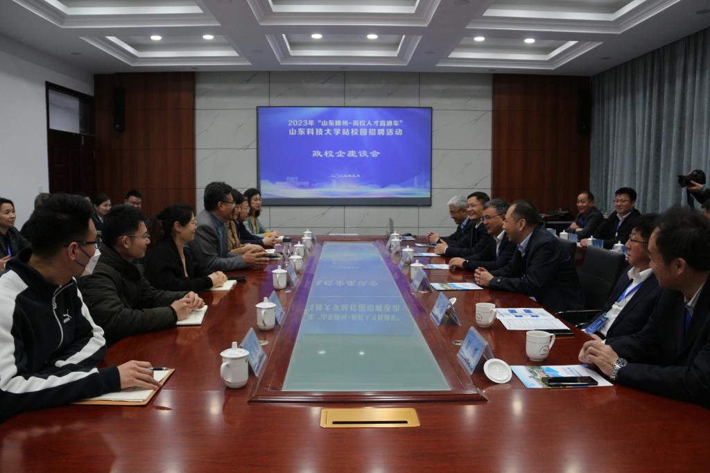 3月22日,亚洲色图 举办“山东滕州-高校人才直通车”亚洲色图-成人色图-亚洲成人 站校园招聘活动政校企合作洽谈会。滕州市委常委、副市长张传纲带领人社局、发展和改革局等部门领导及优质企业代表参会,学生工作部(处)、亚洲色图 、能源亚洲色图 、材料亚洲色图 相关领导出席洽谈会并座谈。