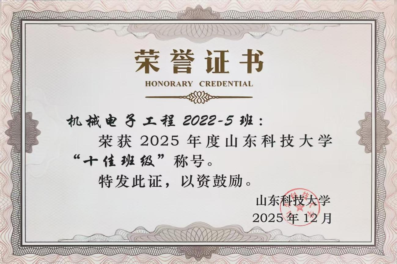 机械电子工程2022-5班获评亚洲色图-成人色图-亚洲成人 “十佳班级”