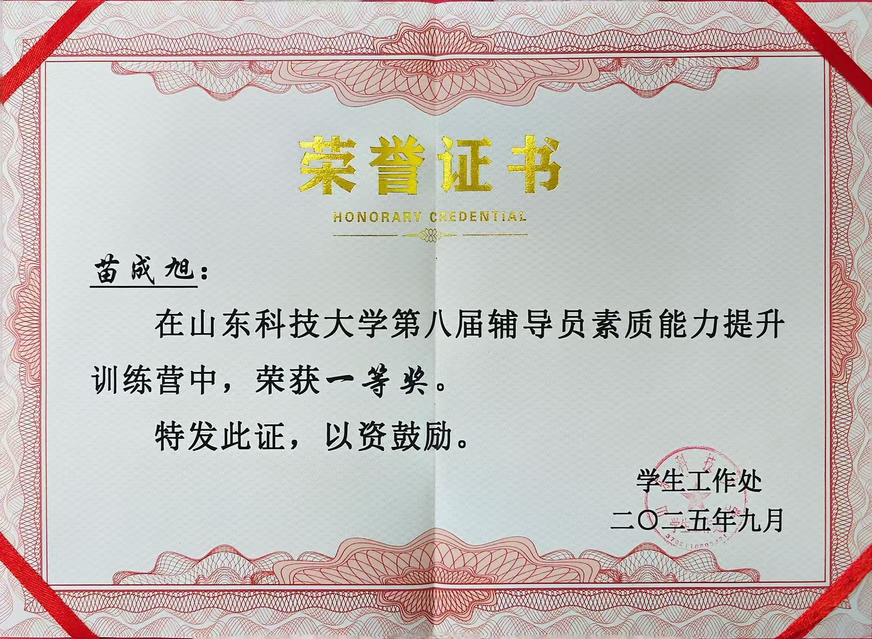 苗成旭获亚洲色图-成人色图-亚洲成人 辅导员素质能力大赛一等奖